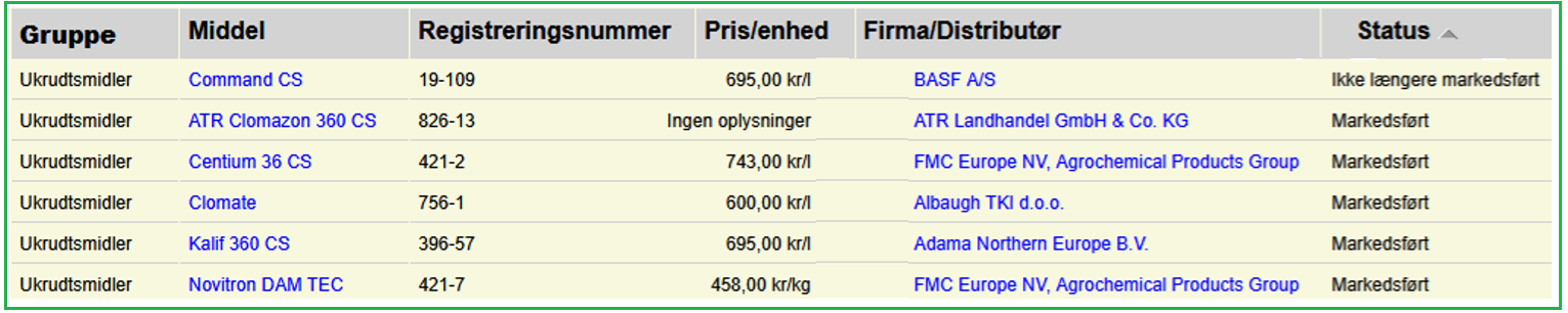 Det kan godt svare sig at se sig for og undersøge priser på produkterne. Et eksempel er clomazone til behandling lige efter såning af vinterraps. Der findes forskellige clomazone produkter på markedet. Førhen hed det bare Command. Det hedder det ikke længere. Den bliver ikke længere markedsført.