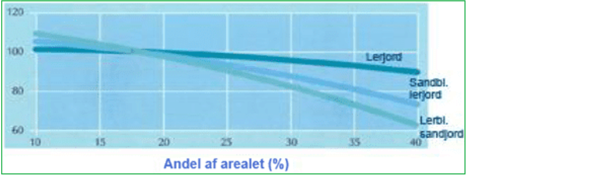 Udbyttetabet er størst på sandjord og mindre på lerjord.