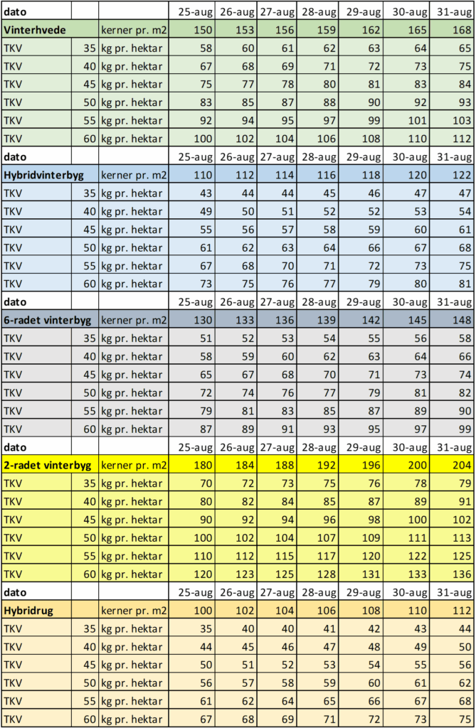 Når du har besluttet dig for, hvor stort et udbytte og proteinindhold, du går efter, kan du beregne behovet for gødning. Under “For abonnenter / Skemaer” ligger skemaer for forskellige afgrøder. Følg eventuelt linket her: